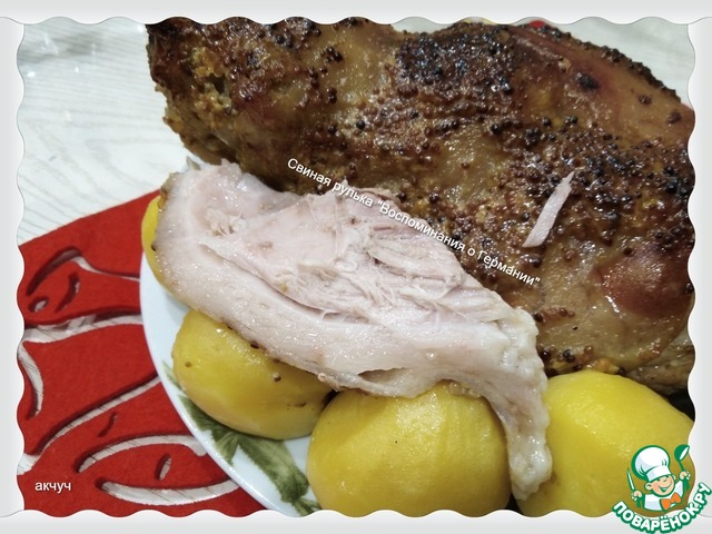 Рульку просто обожаю, хотя это удовольствие и вредное. Но иногда можно себе позволить. У меня была рулька почти два килограмма. Готовила по рецепту. И хотя бульон был ооочень соленым, она все равно не просолилась. Да и потом, после запекания, шкурка насыщенного вкуса, а вот само мясо нейтрального вкуса получилось. Но все равно было ооочень вкусно. Просто подсаливали каждый кусочек отдельно.