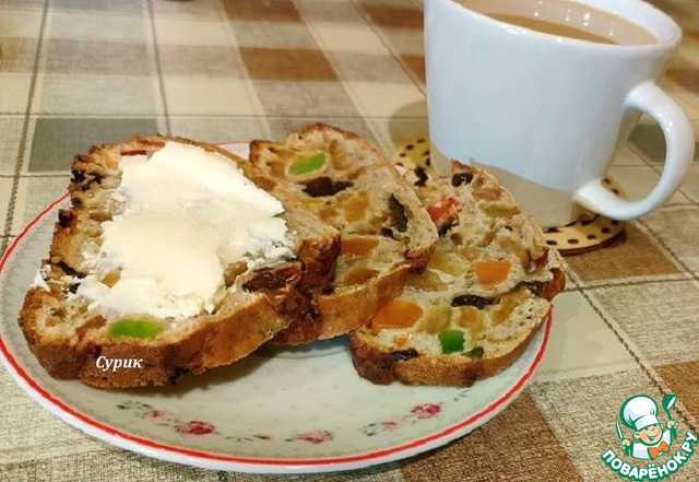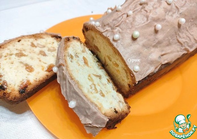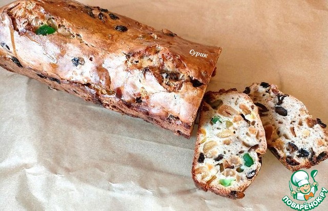 Замечательный кекс получился. Всё по рецепту делала. Из сухофруктов добавила изюм, курагу, чернослив и цукаты. Отрезала два кусочка попробовать, вкусно. Но пока завернула и убрала в холодильник, пусть немного полежит. Думаю, будет ещё вкуснее. А так хочется с маслом и кофейком… ммм!!!
