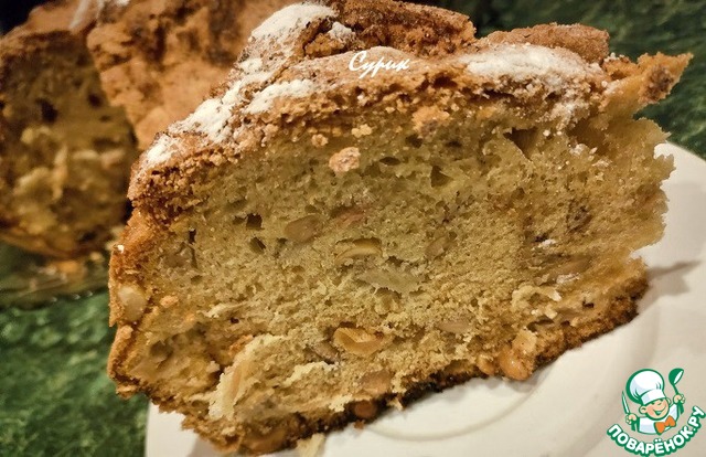 Очень вкусный и ароматный пирог! Я ещё добавила изюм! Орехи- арахис. И не пожалела, положила от души. Необыкновенно получилось! С хрустящей корочкой.