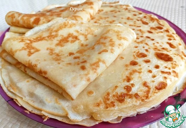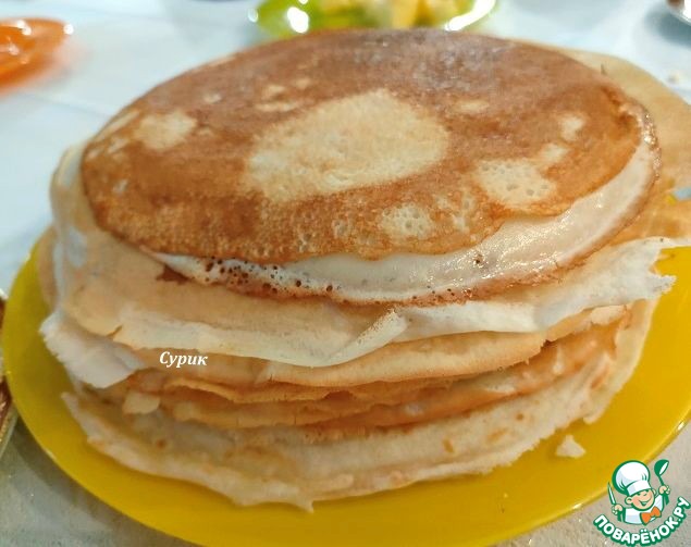 Вкусные блинчики! Готовил зять, как раз в пятницу на масленичной неделе, для тещи! Как приятно было! Количество ингредиентов увеличил. Жарил блины сразу на двух сковородах. Отлично у него всё получилось, любит он готовить блины! Получилась большая горка, да и едоков было не мало! Сели и с чайком всё и съели сразу! Мы сыты, зять доволен!