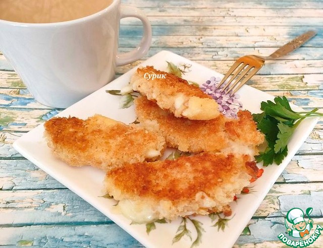 Отличный сыр к утреннему кофе! Вкусно! Сухари использовала готовые – Панко (люблю я их).