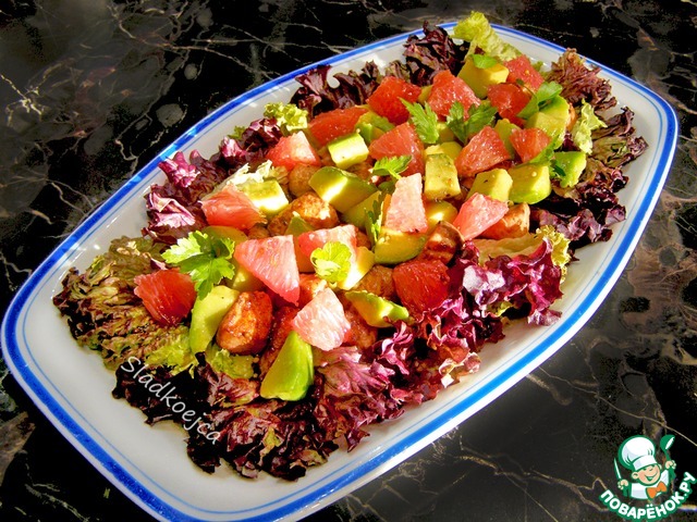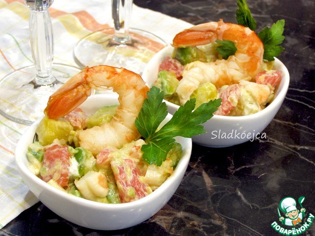 Замечательный рецепт от Светы. Честно говоря, я очень удивилась, что мой фотоотчет был первым. От салата получила большое удовольствие. Он очень нарядный и вкусный! А также - гармоничный и легкий (во всех смыслах). Конечно, не очень бюджетный, но на праздник можно себе позволить.