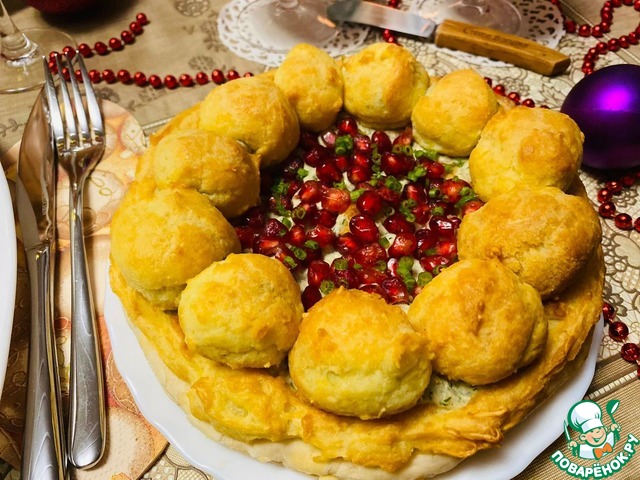 и слепила тортик из того.что было.а вот вместо икры у меня зёрна граната.Получилось вкусно.от слова очень.но через чур сытно и для меня тяжело