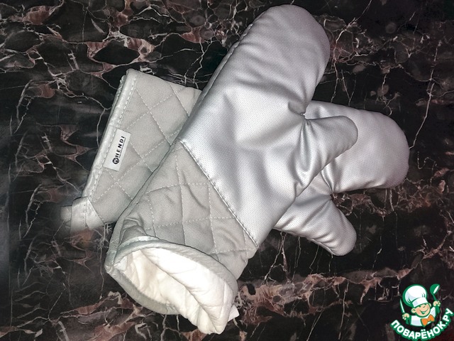 Пришлось купить специальные перчатки для высоких температур (муж обозвал их «рукавицы сварщика»). Пользуюсь ими редко, но чего не сделаешь ради искусства (т.е. желудка