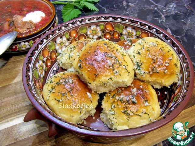 А к борщу испекла пампушки: с чесночком, мягкие и ароматные. Есть два рецепта – выбирайте любые, какие нравятся.