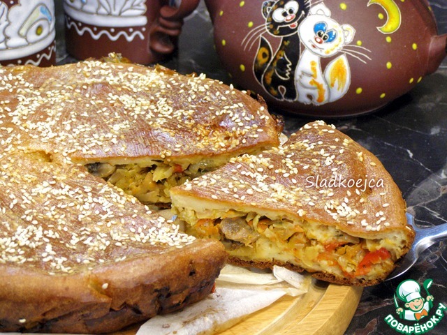 Заливной пирог с капустой и грибами, автор Таня-кофеманка