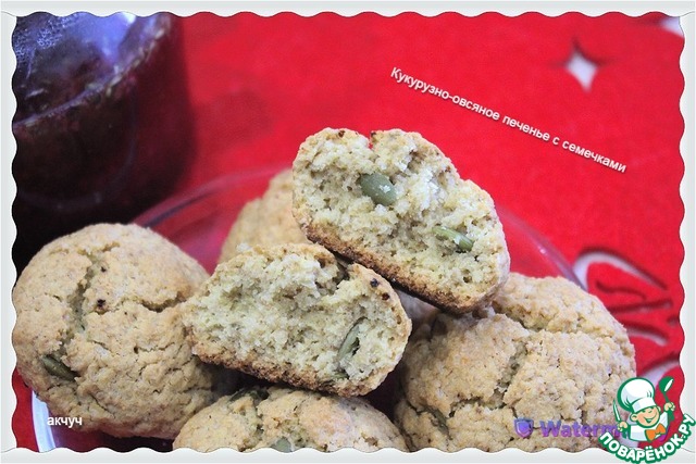 Я просто в восторге от результата! Измельчила в блендере 110 г хлопьев овсяных, муки кукурузной было 80 г, масла растительного и сахара по 3 ст.л., семечки тыквенные, сколько было, сразу добавила в тесто. Легко смогла мокрыми руками скатать колобочки, ничем их не прижимала. Выпекала дольше, минут 20-25. Но какой результат! Очень вкусные, я бы сказала халвичные печеньки! Забираю в любимчики рецепт!!!!