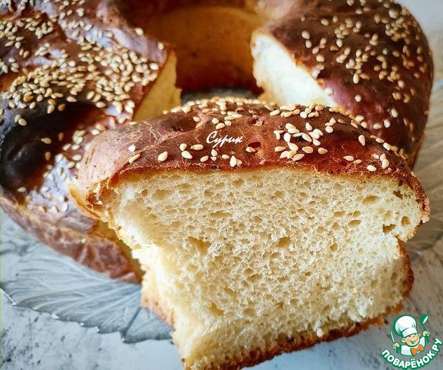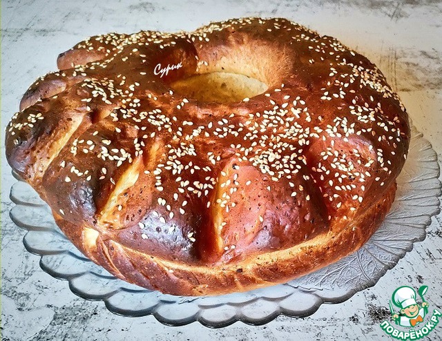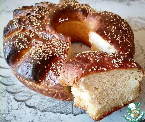 Куличом я бы это не назвала! Получился великолепный сдобный хлебушек! Очень и очень вкусный! Нежный, воздушный! Тесто делала в ХП. При замесе добавила 50 мл молока. Слепила затем колбаску и далее по рецепту. В центр формочки поставила сервировочное кольцо.