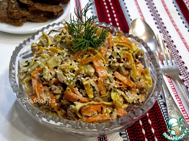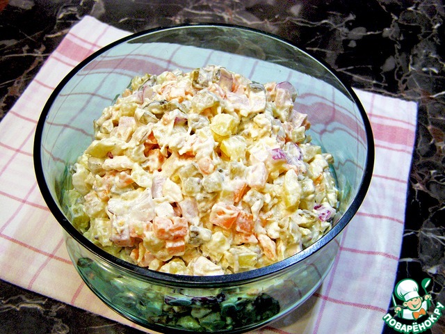 Этот салат в чем-то похож на Оливье, но в то же время и другой, с более свежим вкусом... В общем, хорош салат