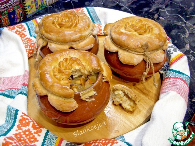 Получилось замечательное жаркое. Правда, чтобы упростить готовку, я ничего не обжаривала, но все равно вышло вкусно. А вот с крышками немного заморочилась, хотелось удивить мужа.