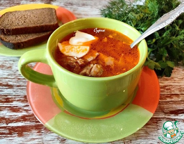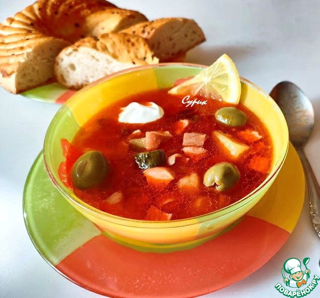 Очень вкусная и ароматная солянка! Ох, как мы любим такой супчик! Добавила ещё с/к бекон.