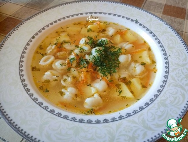Вкусный и быстрый суп! Я взяла пельмени микро (маленькие-маленькие), они очень хорошо ведут себя в бульоне, не развариваются и не расползаются. Добавила ещё картофель.