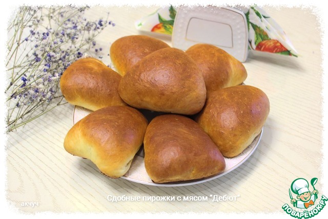 Готовила половину нормы. Жаль, что лишь в конце было указано, что фарша надо больше даже на полнормы. Чтобы не запутаться, взвешивала все продукты: фарша 300 г, дрожжей 10 г, сахара 100 г, масла 100 г, молока 250 г, муки 600 г. Ну и все остальные продукты по рецепту. За 1,5 часа тесто ну ооочень хорошо выросло. Сразу налепила 22 колобочка, потом слепила пирожки и минут 20 дала им постоять. Выпекала при 180 градусах 20 минут, предварительно смазав верх молоком. Получились замечательные вкусные пирожки. Маловато оказалось начинки, но в следующий раз это учту. На два пирожка не хватило совсем, лепила с повидлом. Буду повторять!