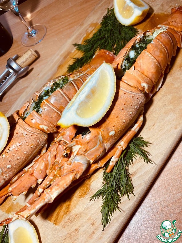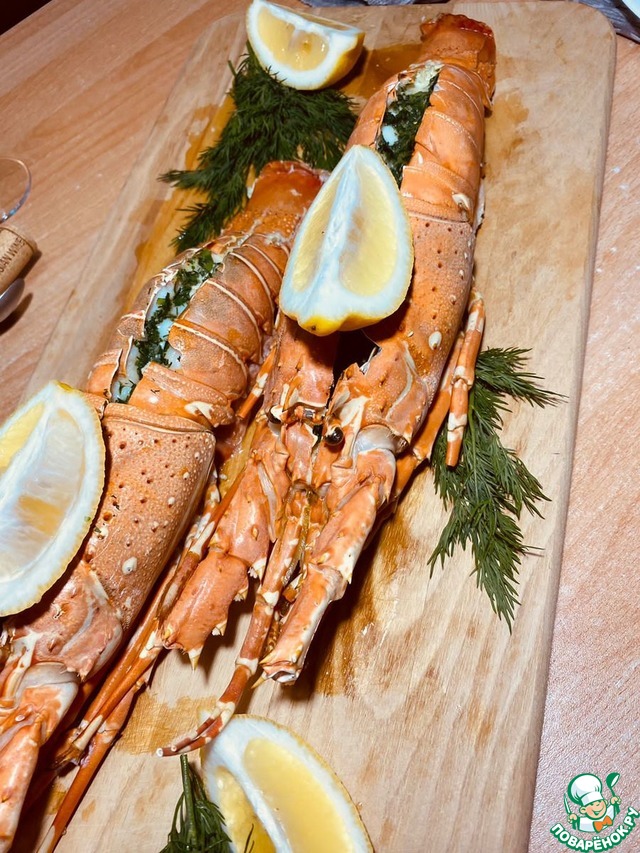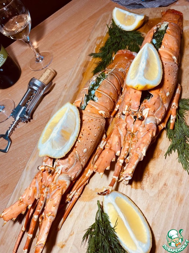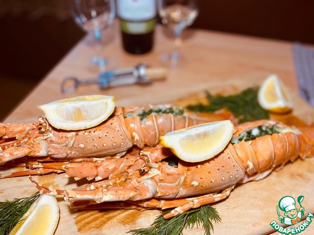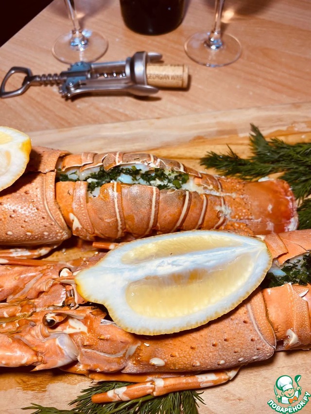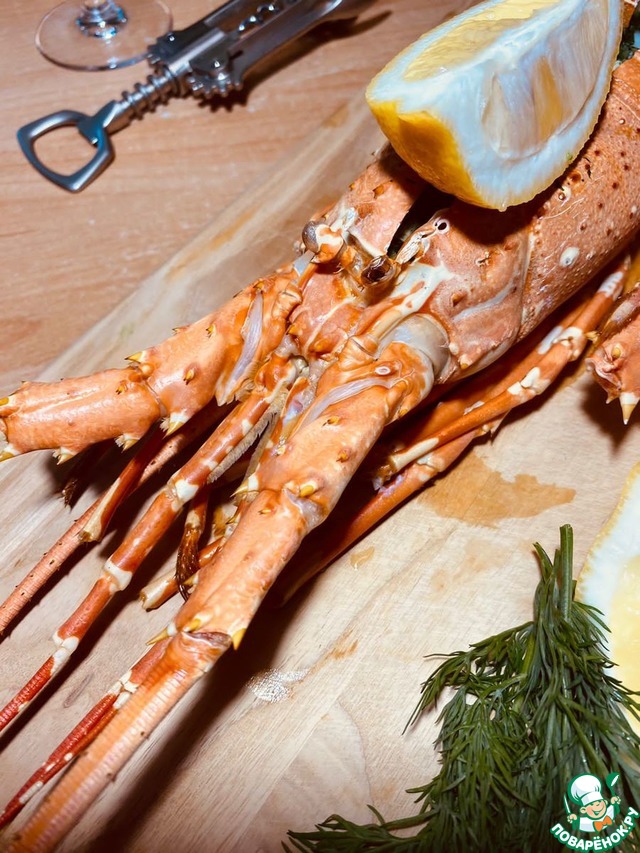 Никогда не пробовала таких больших лангустов.а тем более не готовила их .....и вот в очередной раз зайдя в шикарный магазинчик морских деликатесов и увидев слово акция я поняла.надо брать и я взяла . вот такие два лангуста один весом 700гр.а второй 600гр......конечно же в очередной раз я *взорвала мозг * Танечке -tatabilga-2015.она мне рассказала .как мне разобраться с этими монстрами....а потом я наткнулась на этот рецепт и вот .что у меня получилось а получилось весьма не плохо.подавала с лимоном и белым сухим вином угощаемся!!!