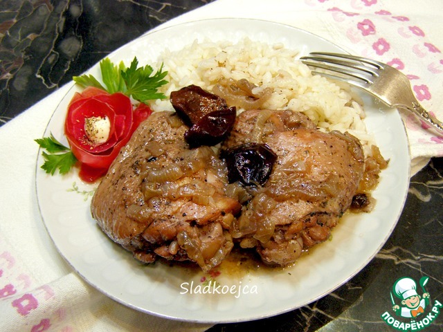 Я люблю использовать вино в блюдах с курицей, только всегда брала белое. Иногда, вместо чернослива, добавляю яблоко или айву… По этому рецепту, с красным вином и черносливом, получилось тоже очень вкусно!