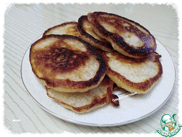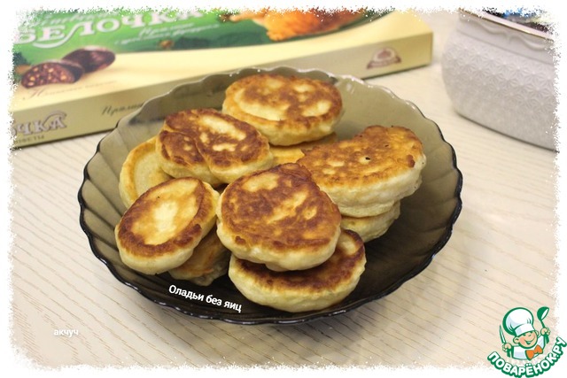 Да, это не сдобные оладушки с маслом и прочим, но при таком минимуме ингредиентов получилось довольно таки вкусно. Муки ушло намного меньше, а в остальном все по рецепту.