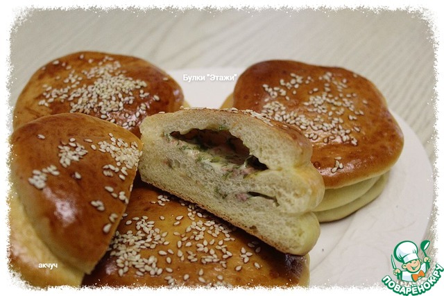 Решила и я воспользоваться необычной формовкой. Муки ушло меньше (всего 430 г), петрушку измельчила в блендере и добавила в начинку, забыла про масло. А в остальном все по рецепту. Получилось 23 колобка, соответственно 8 булочек (одна двухэтажная). Выпекала 20 минут при 180 градусах. Получились вкусные сытные булочки. Семья довольна.
