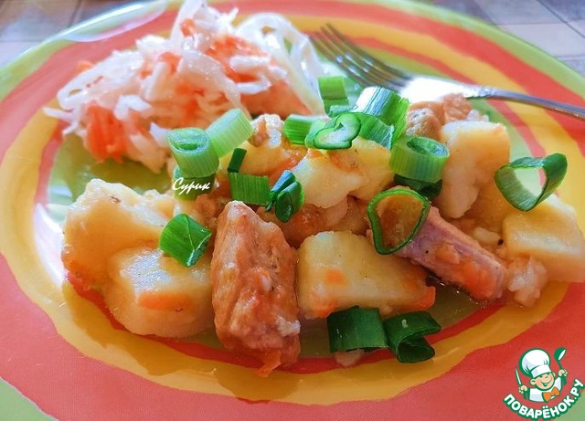 Вкусный, ароматный картофель с мясом! Очень и очень вкусно! С квашенной капустой.. слов нет!