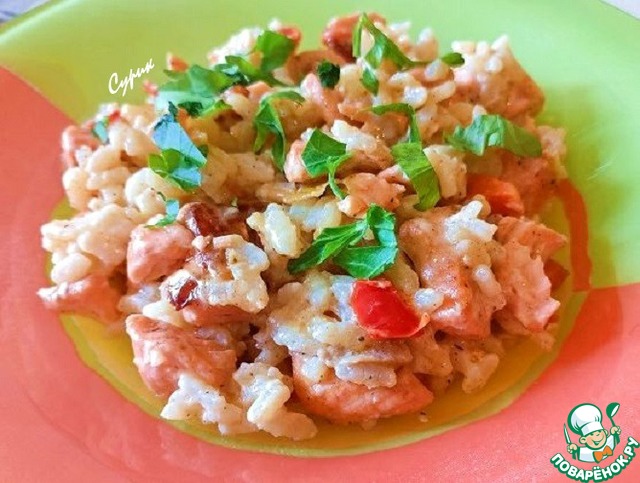 Необыкновенно вкусно и ароматно! Очень! У меня с форелью. И без кабачка, но с морковкой. Рис – ризотто.