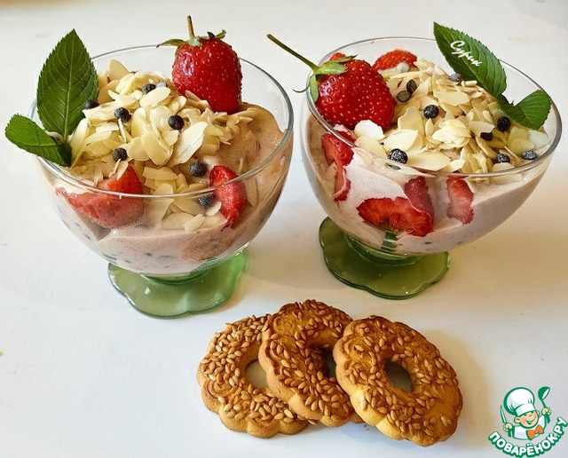Вкусно, быстро, просто! Сверху посыпала миндальными лепестками. Отличный десерт в жаркое время года! Наташеньке спасибо большое за рецепт! Светлая ей память!