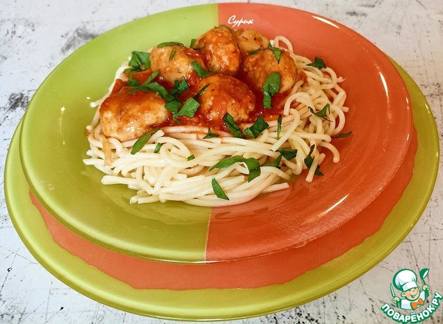 Спагетти с мясными шариками в томатном соусе