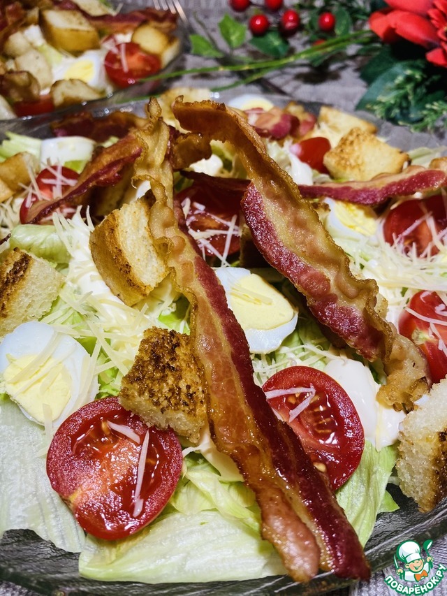 от себя добавила помидорки .а яйца перепелиные.Красивый и нарядный салатик!!!