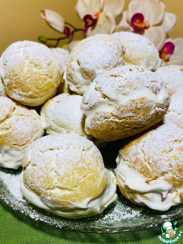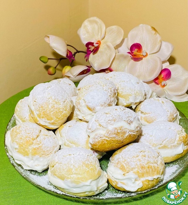 !Заварное тесто строго по рецепту.а в начинку я использовала взбитые сливки и малину.Получилось очень нежно и безумно вкусно!!