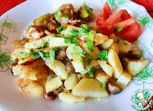 Жареный картофель с шампиньонами