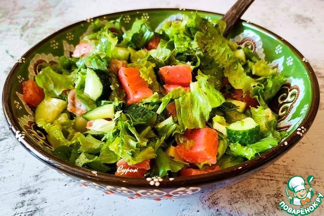 Зелёный салат с сёмгой