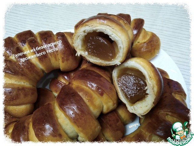 Семья захотела сладких булочек с повидлом. Дрожжи брала сухие 7 г, соль 12 г. В тесто добавила 1 яйцо и 1 белок (90 г), поэтому муки ушло на 20 г больше (пришлось добавить цельнозерновую). Далее все по рецепту, только не смазывала маслом. Налепила 30 штук, часть из которых сделала с сосисками. Выпекала 20 минут при 180 градусах. С повидлом получилось вкусно, а вот с сосисками попробовать не удалось, так как собрала в дорогу сыну.