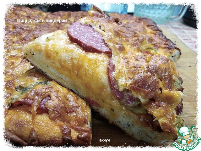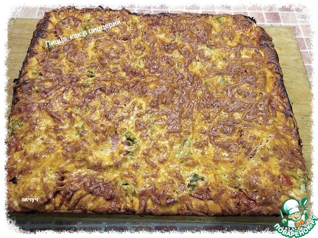 У меня получился скорее пирог, а не пицца. Муки ушло 500 г, от себя в тесто добавила базилик. Тесто за полчаса оочень хорошо выросло. Легко руками растянула на весь противень и далее уже по-своему все положила из того, что было. Решила последовать совету по температуре. У меня электрическая духовка. Поставила противень на самый верх на 250 градусов на 10 минут. Тесто осталось сырым. Переставила противень в самый низ снова на 10 минут. Все приготовилось, но сыр слегка подсох. Надо было чуть раньше вынимать. В итоге получился высокий пирог. На пиццу не совсем похоже, но семья оценила. Сытно и вкусно, чего еще желать.