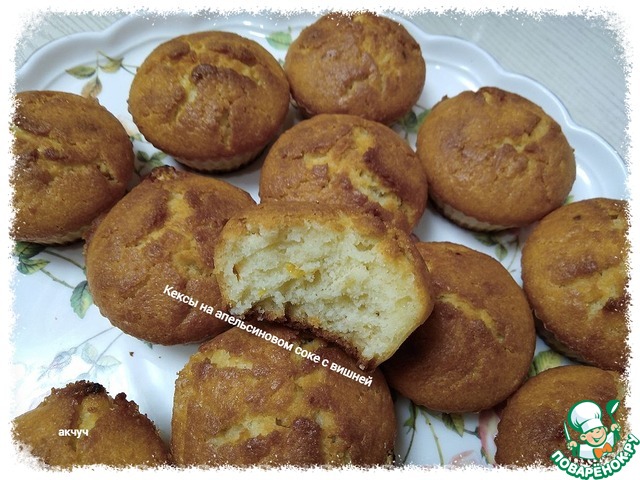 Залежался апельсин, вот и нашла ему применение. Сока дал мало, пришлось добавить водички. Выпекала в маленьких формочках около 35 минут при 180 градусах. Получились вкусные, немного плотноватые, с апельсиновым привкусом кексики.