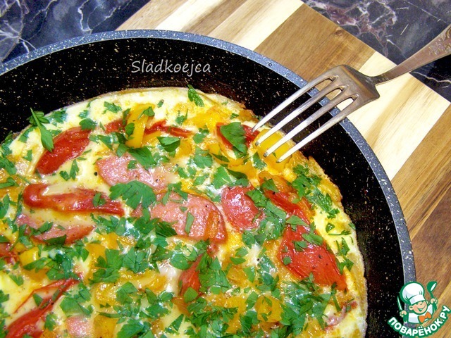 Яичница с обжаренными овощами и колбасой, автор elenita