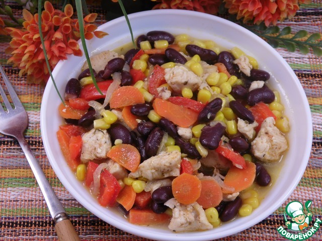 Аппетитное, яркое и красочное рагу - хороший сытный ужин для всей семьи. Вкусно и ароматно! Готовится быстро, просто и с минимальным количеством трудозатрат. Большой плюс - продукты для него всегда есть в холодильнике или в ближайшем магазине.