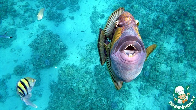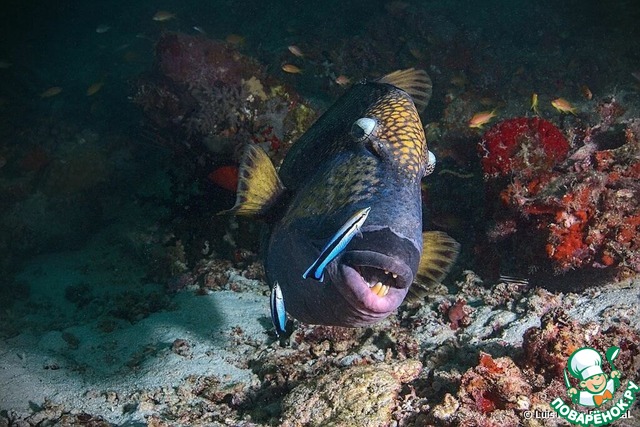 Но не яркость окраски привлекла нас в триггерфиш. А их пухлые губки! Необычный, почти человеческий ротовой аппарат рыбки используют для охоты на бронированных придонных существ. Мясистая губная часть моськи защищает рыб от острых осколков раковин и шипов, а крепкие зубы с лёгкостью дробят морских ежей, звёзд, крабов и прочую мелюзгу. Никакой конспирологии, чистая биология!