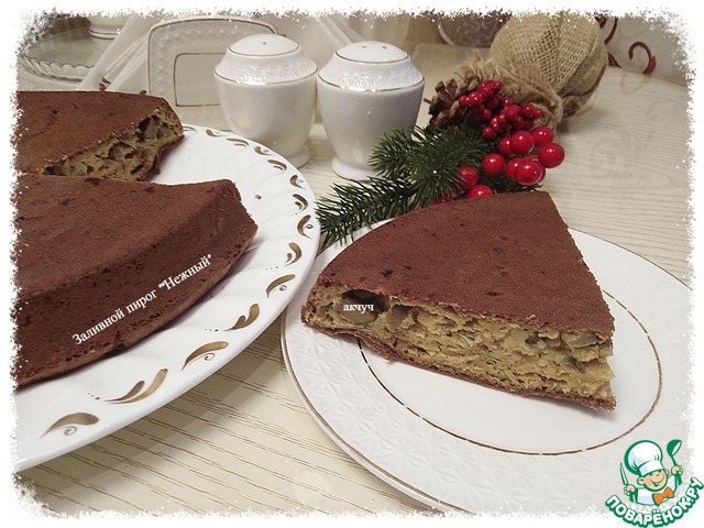 Готовила точно по рецепту. В начинку использовала остатки жюльена. Выпекала 35 минут при 180 градусах. Пирожок хорошо вырос в духовке, но при остывании опал. Сначала расстроилась, но потом просто перевернула и вот такой красавчик. Оооочень вкусный и в горячем и в холодном виде. И да, получился мягонький и именно нежный. Да и делать легко и быстро.