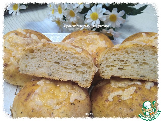 Готовила точно по рецепту, только от себя добавила прованские травки и муки ушло 350 г. Получилось 13 булочек, которые я смазала молоком перед запеканием. Выпекала 15 минут при 180 градусах, потом сверху положила сыр и допекала еще 10 минут. Так сыр не засох и мягко расплавился на булочках. Получилось вкусно. Немного плотноваты, может надо еще уменьшить муки.