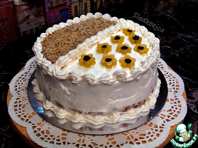 Отличный рецепт, торт получился вкусный. Тесто я выпекала в мультиварке (50 мин при Т=130*С), далее все по рецепту. Несмотря на то, что корж получился мягкий и пористый, я его пропитала апельсиновым сиропом. И не пожалела, от пропитки торт только выиграл. Украшала орехами и цветочками из домашнего мармелада: https://www.povarenok.ru/recipes/show/129993/