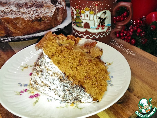 Пирог получился вкусный. Тесто мягкое и рыхлое, масляное. Яблоки уложила на дно, как в рецепте, но лучше бы вмешала в тесто небольшими кусочками, вкус был бы однороднее. Сахар использовала коричневый, поэтому и цвет у пирога вышел загорелый