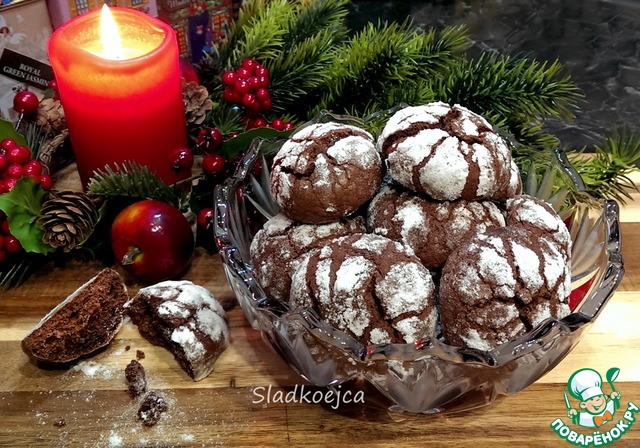 Очень вкусно, нарядно и шоколадно-о-о!!! От рецепта не отступала, получилось 34 печенья, выпекала двумя партиями. Первую держала в духовке 15 минут, все опасалась, что печенье сырое. А вот вторую партию выпекала 12 минут, и у нее серединка осталась жидкая, налипала на лучинку. Вторые мне понравилась больше. Так что, не страшно, если середина останется непропеченной, это даже очень хорошо