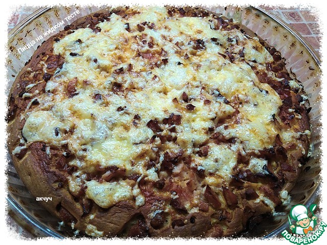 Нужно было срочно что-то сытное приготовить. Рецепт как раз подошел. Стакан использовала 250 мл. Муки ушло 2 стакана, остальное по рецепту. Выпекала 25 минут при 180 градусах, потом посыпала сыром и еще минут 10 подержала в духовке. Я пекла в большой стеклянной форме. Тесто получилось не тонким и не высоким, что-то среднее. И после выпечки цвет был темный в разрезе. Согласна с предыдущими комментариями, что тесто тяжеловато отходит от формы, но у меня все получилось. В общем, получилось вкусно.
