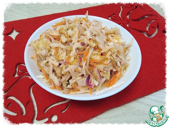 Готовила половину нормы. Капусту резала соломкой, морковку натерла на терке для корейской морковки. Далее все по рецепту. Под гнетом капустка простояла часа 4. Не терпелось поскорее продегустировать. Хрустящая, сочная, в меру соленая. Но для меня островата. Для себя буду уменьшать количество перца. А готовить буду еще раз обязательно, очень вкусно получилось!