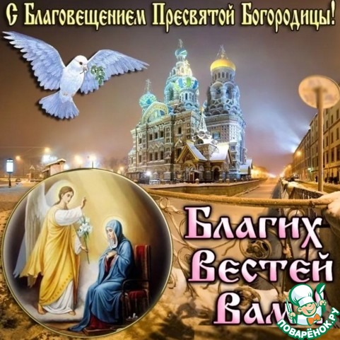 В этот светлый праздник Благовещения Пресвятой Богородицы желаю вам чистого неба над головой, душевного спокойствия и благополучия.