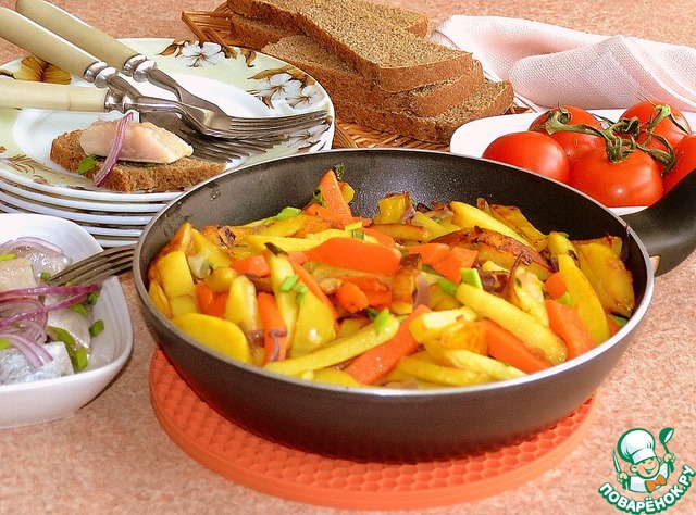 Сегодня у меня картофель жареный. Залежалась тыква и я решила ее пристроить и заодно поснимать фото. В результате из 40 фото выбрала всего два после обрезки.