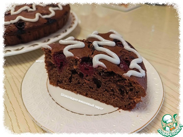 Все продукты были в наличии. Да и давненько хотела что-нибудь испечь с вишней (из морозилки). Выпекала 40 минут при 180 градусах. Верх украсила взбитым с пудрой белком. Получился очень вкусный, в меру влажный пирожок.