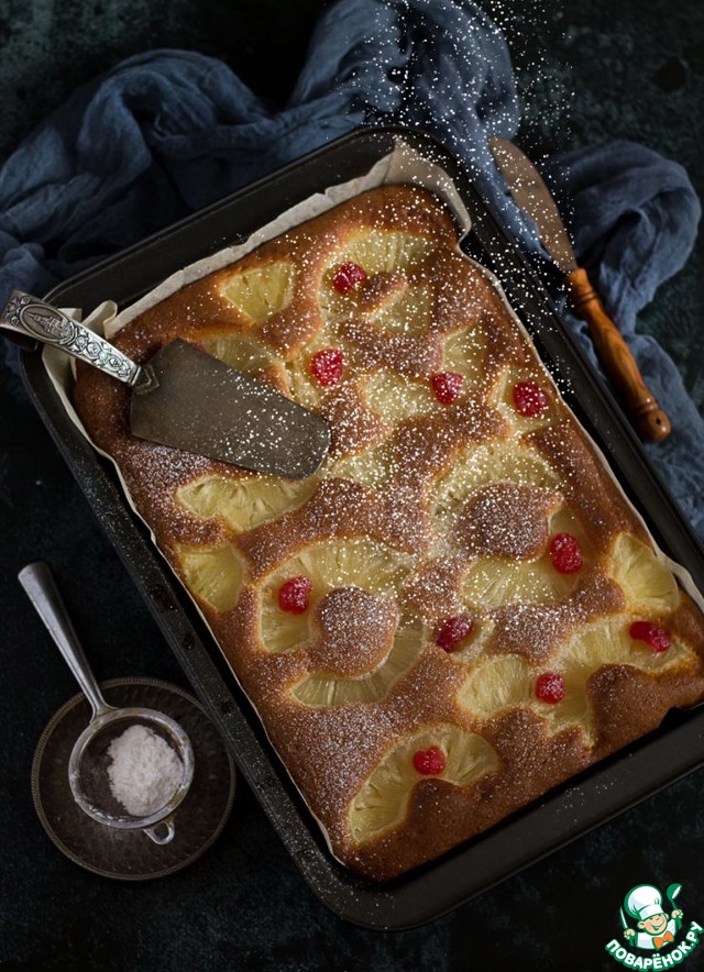 На мой взгляд, можно было чуть ниже подвинуть ситечко с сахарной пудрой, чтобы поддержать угол и не прилепляться к форме, да и нож напрашивается на свое личное пространство вверху, немного сливается с формой. Но это маленькие штрихи