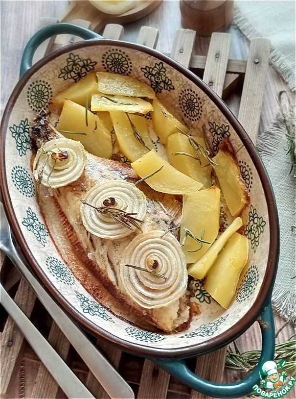 Задание 23 - камбала, запечённая с луком, картофелем и розмарином