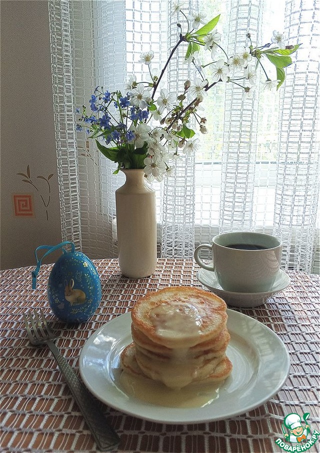 День солнечный. Снимала на телефон с использованием режима "фудфото" и сетки. Окно впереди, пришлось подсвечивать зеркалом оладушки. Редактировала в фоторедакторе на компьютере. Фото не обрезала. Осветлила немного, добавила чуть контрастности и резкости, подписала. Мой завтрак: рисово-пшеничные оладьи со сгущёнкой и кофе. Если присмотреться, то можно увидеть парок над чашкой. Конечно он такой густой, но на белой занавеске потерялся. Вот.что у меня получилось.