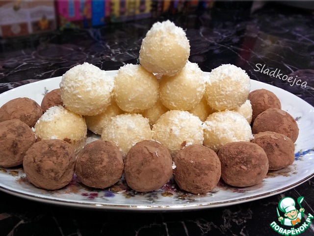 Интересные домашние конфеты, нам понравились! Не приторные, сахара в меру. У меня из сухих сливок, для аромата добавила коньяк, в середину положила орешек.