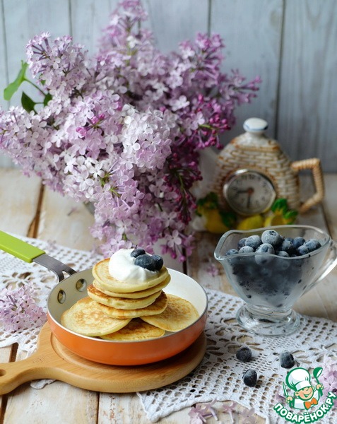 Интересно как чёрная сковорода жестко притягивает все внимание на себя, вернее на панкейки в ней. А на доске совсем другое впечатление. Всё как-то мягче.